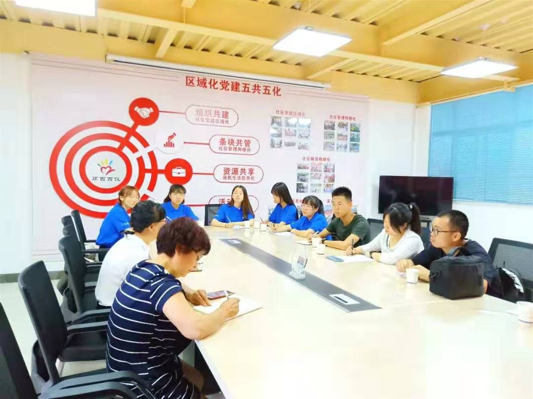 之后,我队成员和社区工作人员进行了座谈,对即将开展的“垃圾分类”、“慈善文化”、“生命教育”等活动进行了细致的安排,就活动内容与开展形式进行了讨论沟通,并在西仪社区慈善老年大学校长的带领下,参观了读书屋、居家养老服务站等社区建设,并确定了之后活动的场地。
