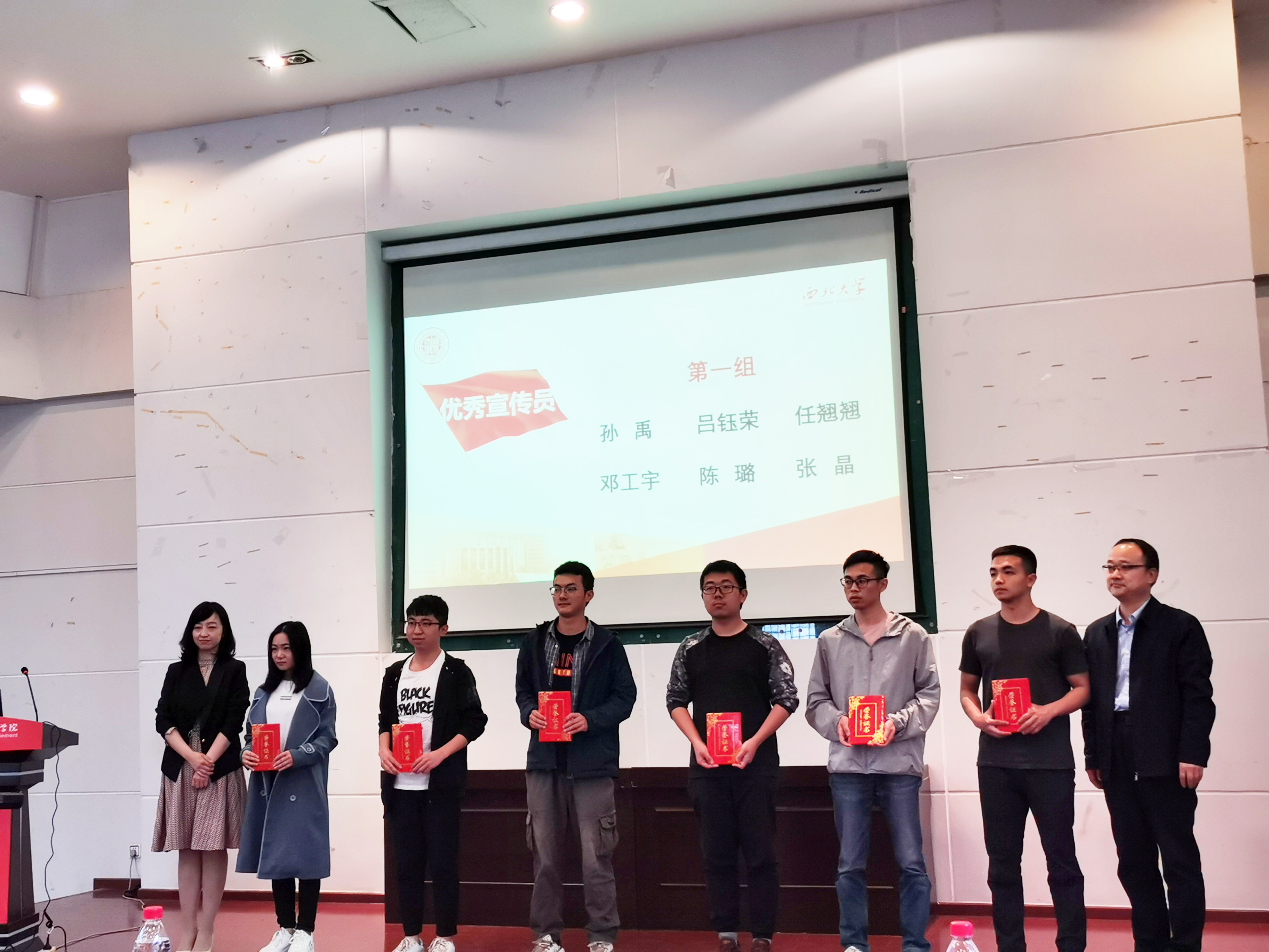 会上,校党委常委、总会计师张增芳宣读了《西北大学关于表彰2018年招生宣传先进单位和个人的决定》,与会领导为获奖单位、团体和个人颁奖。其中,我院李鑫老师获“先进个人”称号(教师),由我院吴嘉琦、娜非沙同学组成的“我心向阳,弦歌西大”团队获“优秀团队”称号,我院吴嘉琦、岳鹏瞻同学获“先进个人”称号(学生)。
